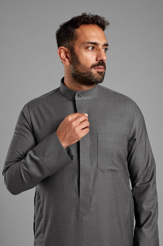 Men's Dark Grey Collared Thobe