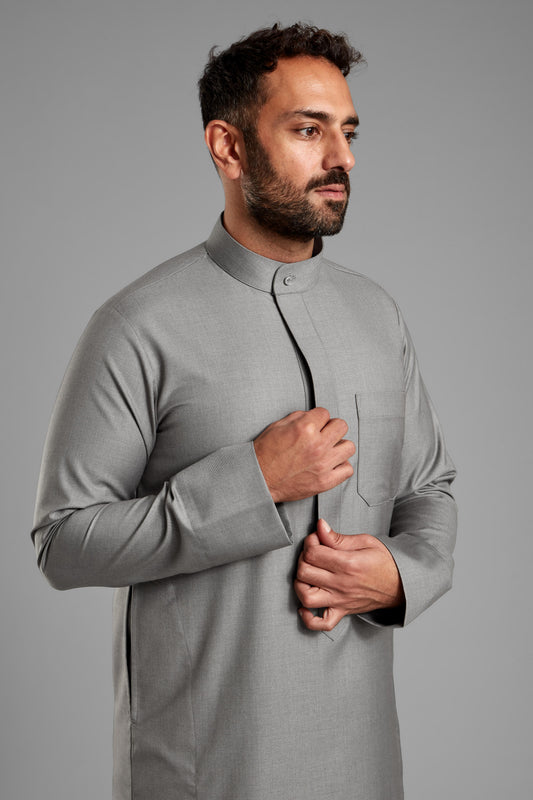 Men's Light Grey Collared Thobe