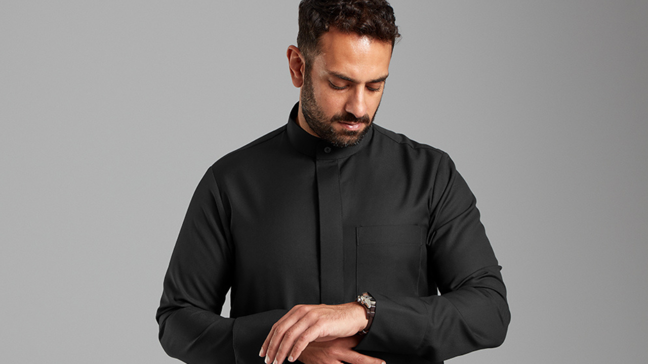 Men's Jet Black Collared Thobe