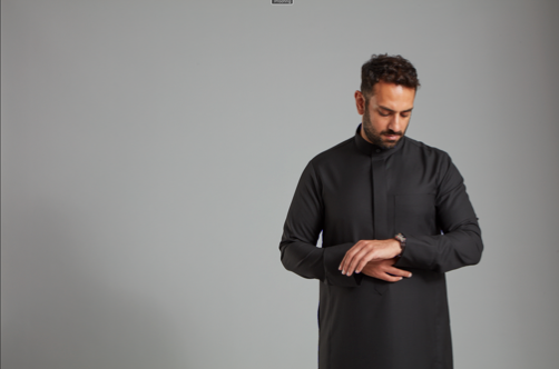 Men's Jet Black Collared Thobe